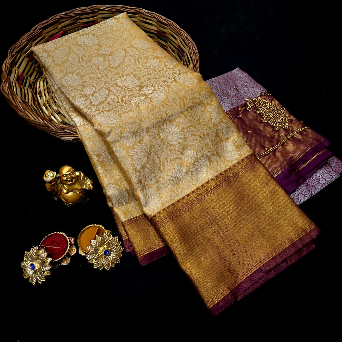 Neeta Ambani Celebrity Inspired Golden Floral Designer Silk Saree