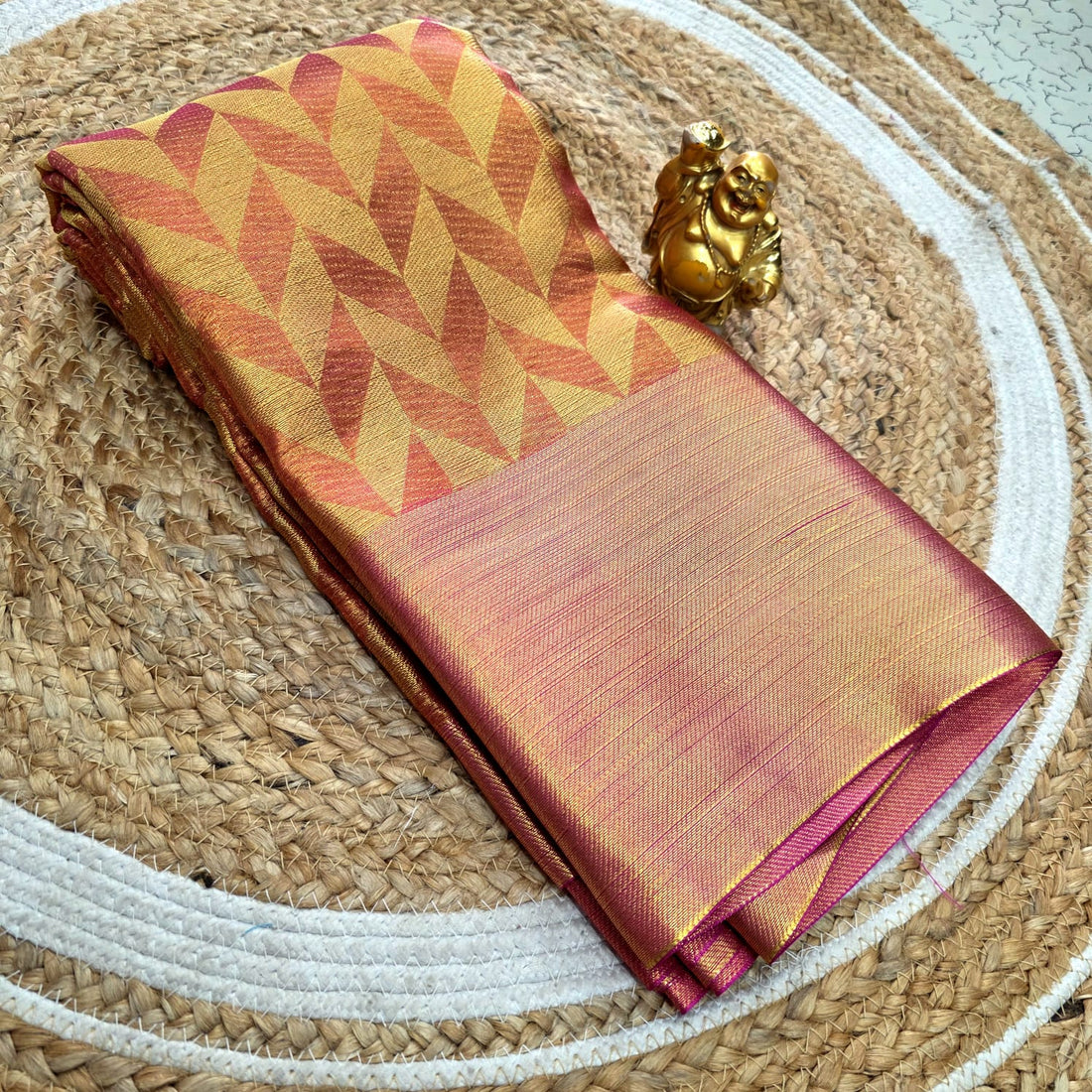 Tissue silk with a rich glossy finish• Elegant geometric zari weaving gives a stylish designer...