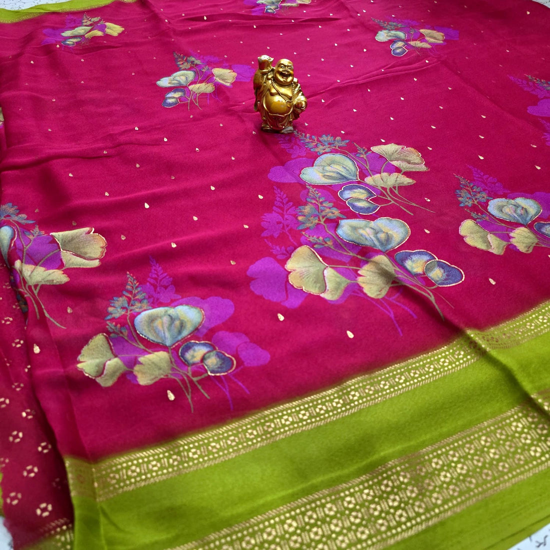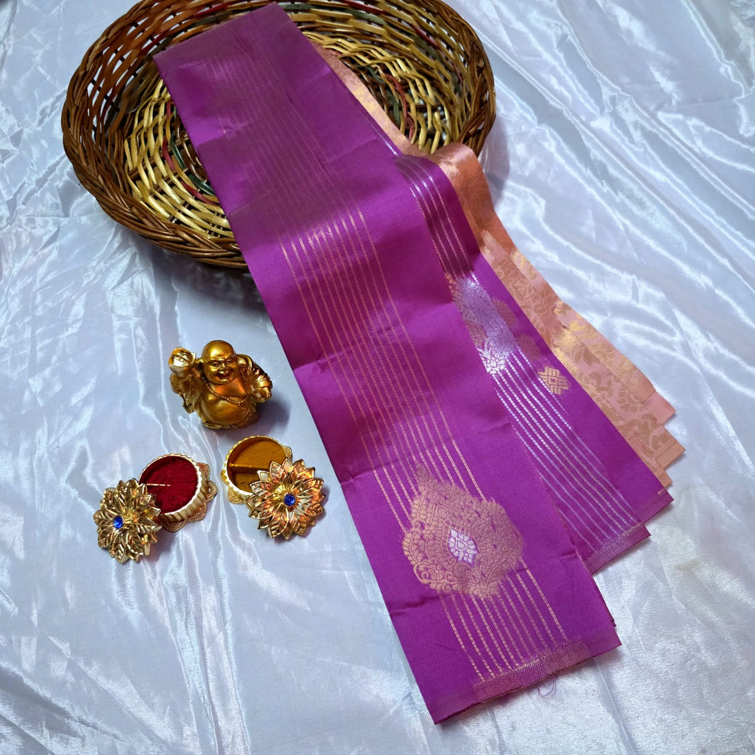 Premium quality soft silk fabric. Elegant borderless design for a modern classy look. Rich Vairaoosi...