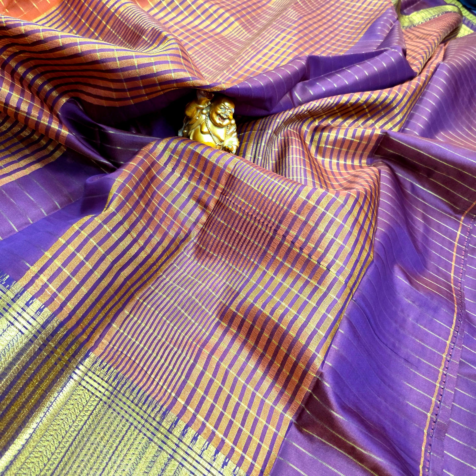 Rich and broad border with intricate zari weaving for a grand finish